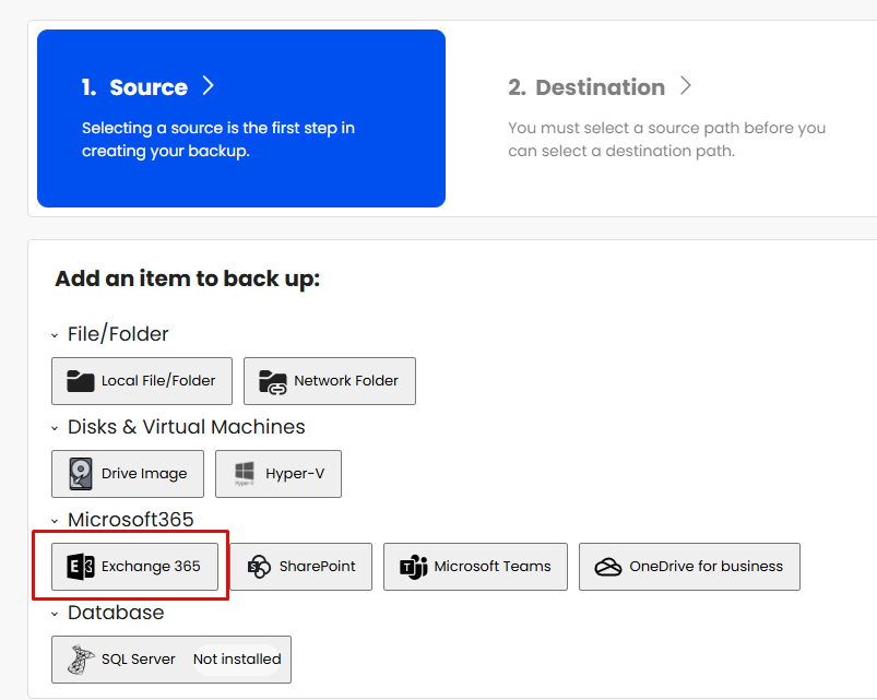 È possibile salvare account Cloud, FTP, Microsoft 365 , SQL server e percorsi di rete.