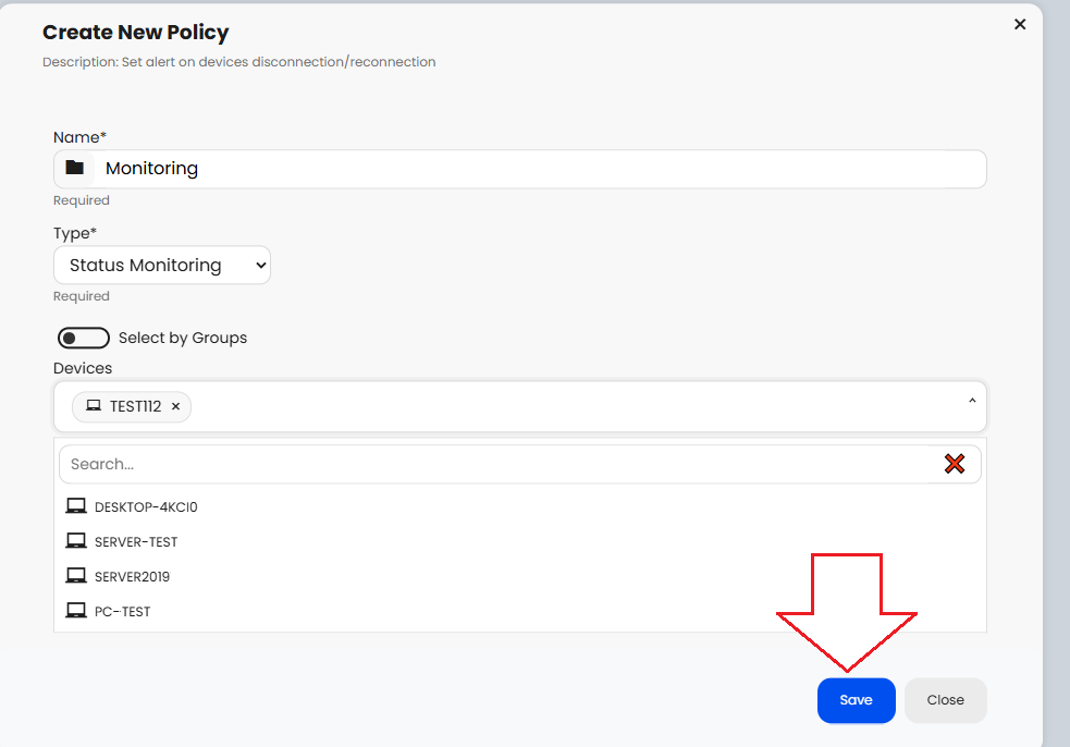 - Status monitoring: questa policy permette di notificare all’utente se un dispositivo si connette /disconnette