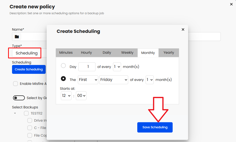- Pianificazione: utilizza questa policy nella configurazione dei backup, specificando una schedulazione ben precisa per i backup (giornaliera, settimanale , mensile, annuale)