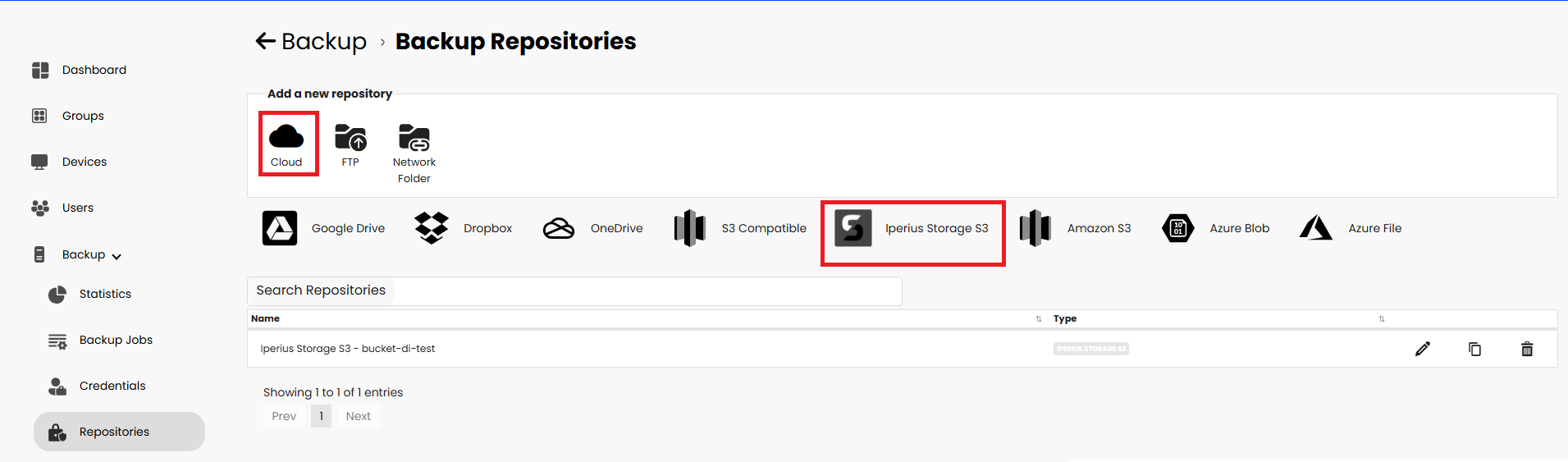 Adesso la repository S3 è salvata nella lista , pronta per essere utilizzata nelle operazioni di backup.