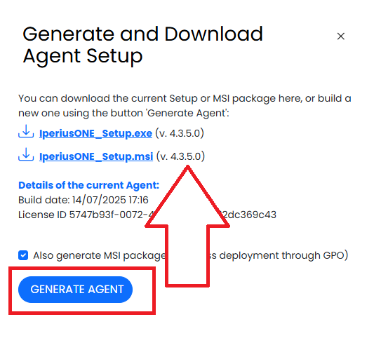 È possibile generare e scaricare solo il setup o anche il pacchetto MSI in modo da poterlo installare in maniera massiva su tutti i dispositivi.