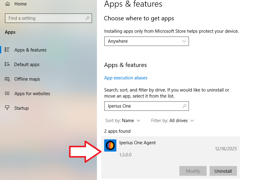 Per disinstallare completamente Iperius One dal dispositivo si deve seguire la procedura standard di Windows per la disinstallazione di un programma: