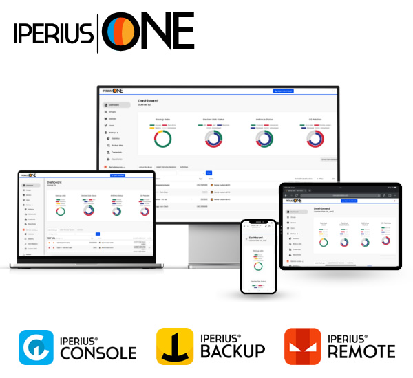 La piattaforma RMM all-in-one che unifica le funzionalità di Iperius Backup, Iperius Console e Iperius Remote in un'unica soluzione professionale. Gestisci backup in cloud e on-premise, monitora lo stato di salute dei sistemi, controlla le patch di sicurezza e accedi in remoto ai dispositivi, tutto da una singola dashboard web centralizzata.